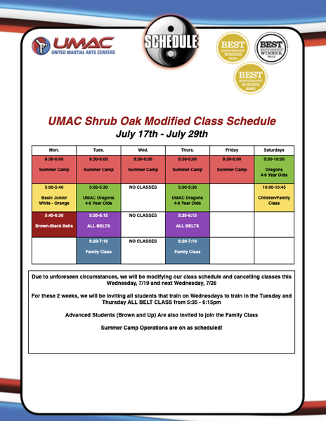 (UMAC) Announcements - MODIFIED SCHEDULE FOR 2 WEEKS
