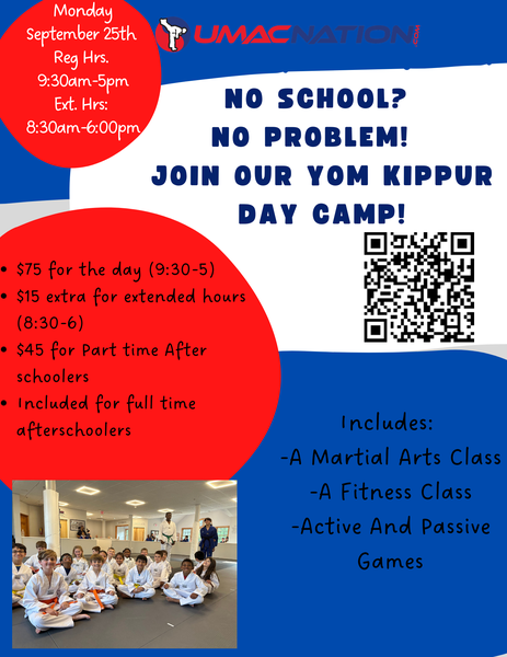 (add on early drop off at 8:30 and late pickup at 6pm) and will be filled with martial arts and fitness classes, structured active games, and other activities for your child to socialize with other kids